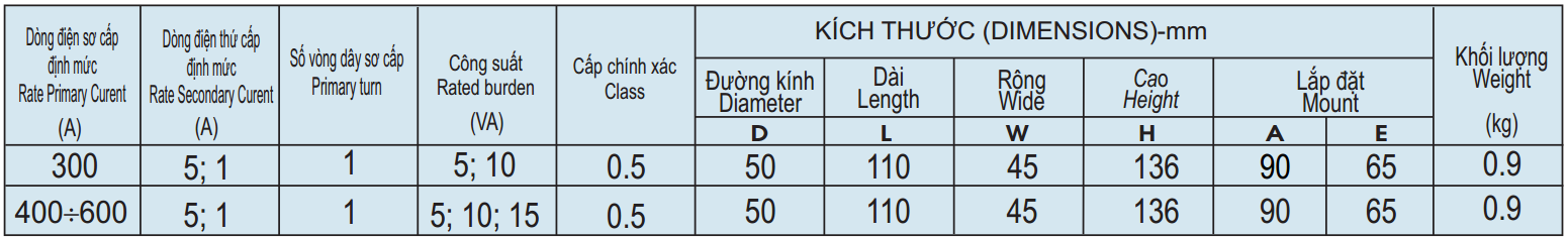 | Biến dòng đo lường 300/5A EMIC | Biến dòng hạ thế EMIC MCT 300/5A | EMIC CT0.6 |