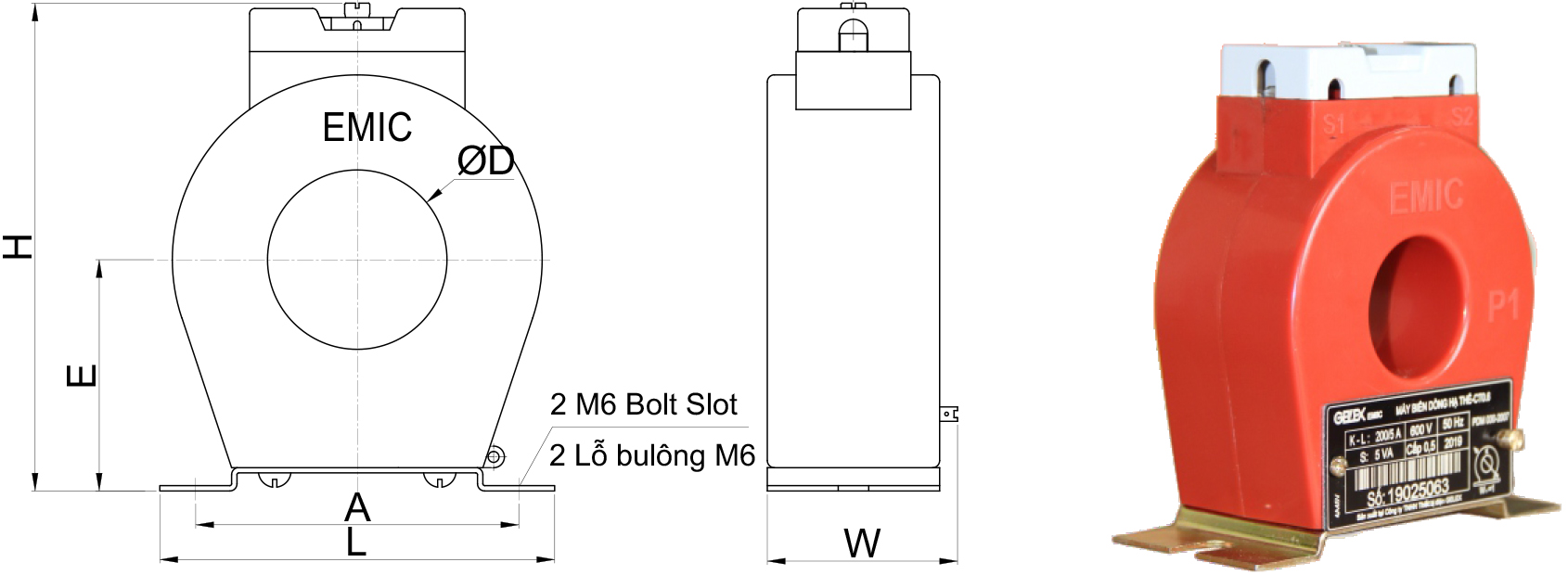 | Biến dòng đo lường 6000/5A EMIC | Biến dòng hạ thế EMIC MCT 6000/5A | EMIC CT0.6 |