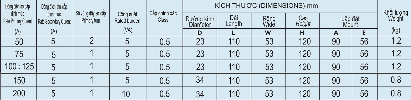 - Dòng điện: 50/5A
